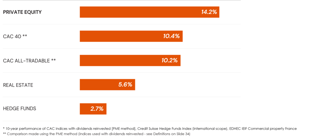 Avec un rendement moyen de 14,2 % par an, l’investissement en Private Equity a battu tous les autres investissements sur les 20 dernières années :