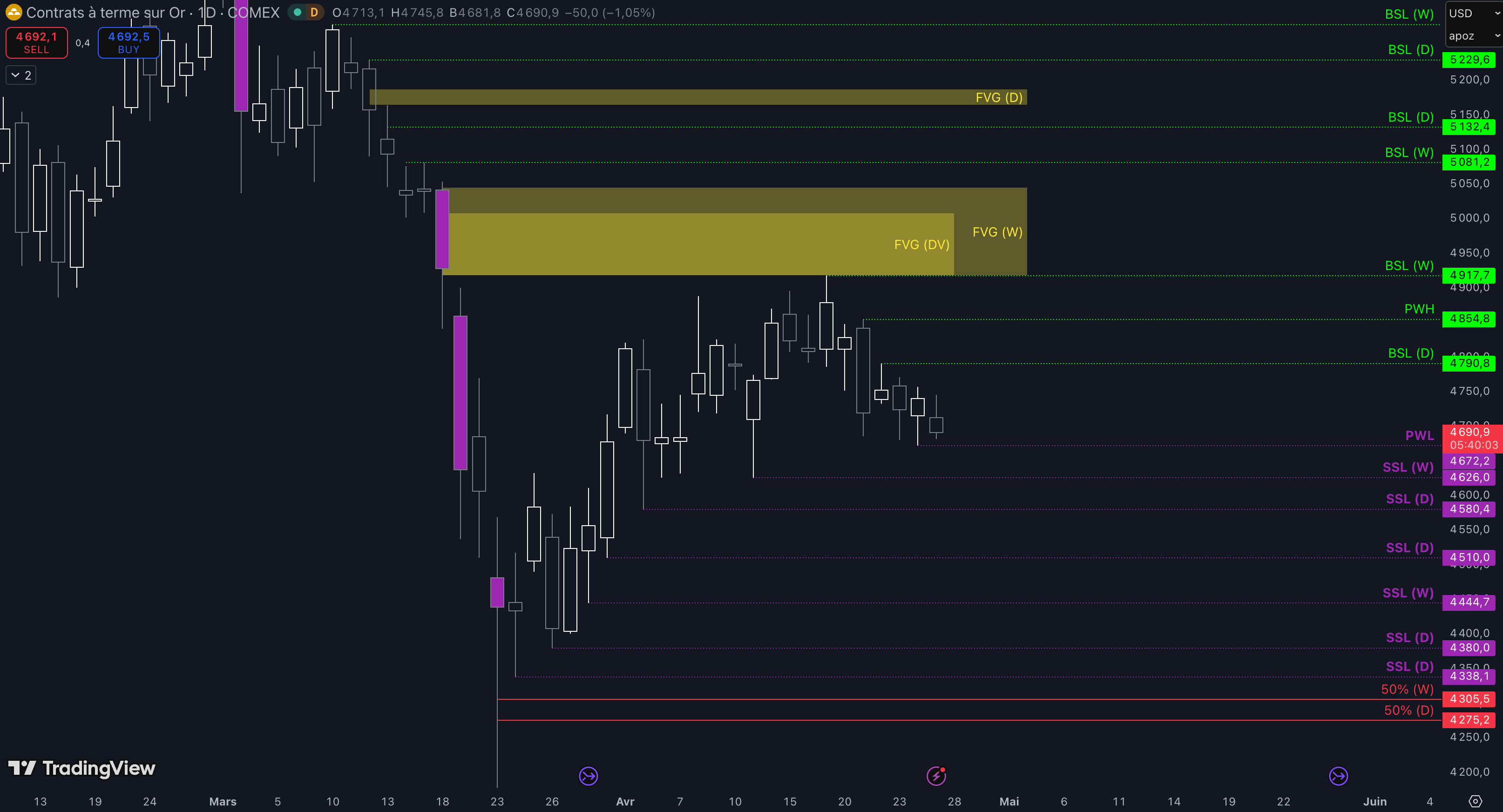 Analyses : S&P500, Nasdaq, Gold, DXY, BTC, ETH et Altcoins.