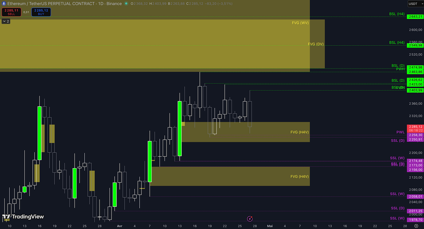 Puis, si aucun top ne se forme dans la zone précédente, alors le prochain objectif sera la poche de liquidités entre 2.423 $ et 2.426 $ (target N°2) ;