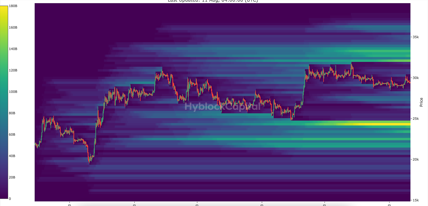 Sur le BTC, les liquidations LONG dépassent les 170 milliards $ sous le niveau des 25.000 $.