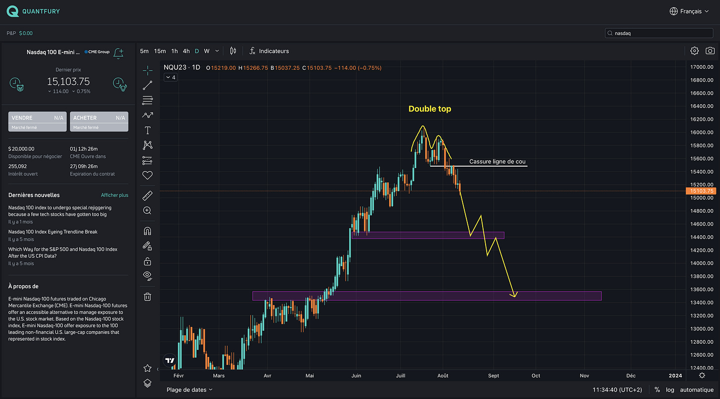 Les indices boursiers US marquent des signes de sommets parce que la majoritĂ© se met Ă LONG les indices donc leurs stops sâaccumulent au sud ce qui favorise la chute des marchĂ©s pour capter toute cette liquiditĂ© plus bas.