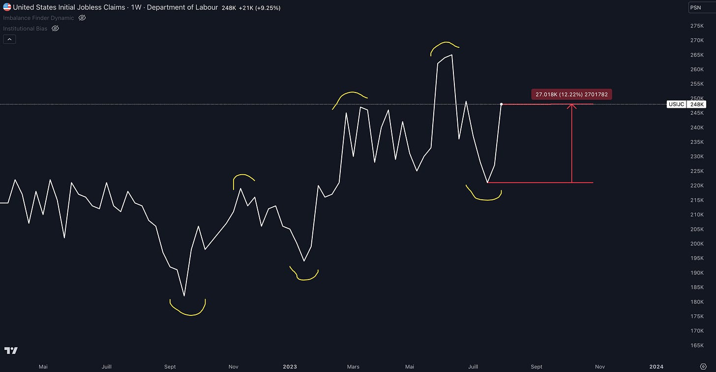 Quant aux réclamations initiales du chÎmage, elles sont en augmentation de +12 % sur la derniÚre quinzaine de juillet ce qui confirme la tendance haussiÚre du chÎmage depuis septembre 2022.