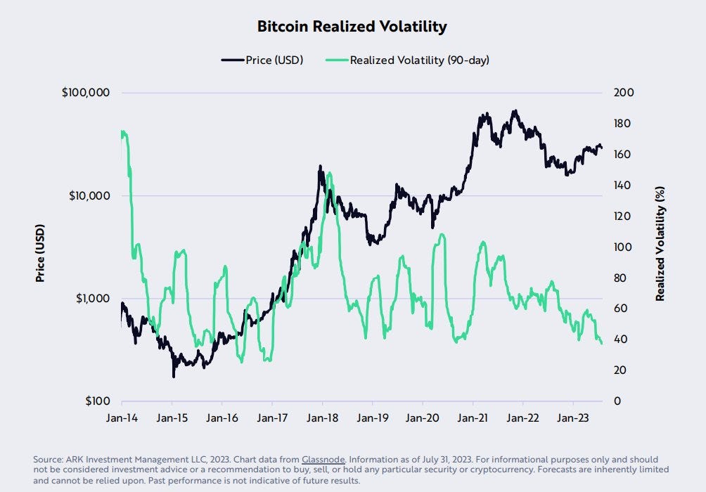 La volatilité du bitcoin a atteint son plus bas niveau depuis 2017 avec une volatilité qui avoisine les 36 %.