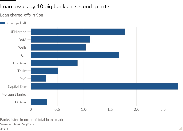 Sur les 19 milliards $ de pertes, prĂšs de 50 % proviennent des prĂȘts sur cartes de crĂ©dit car les consommateurs amĂ©ricains ne peuvent plus rembourser leurs prĂȘts.