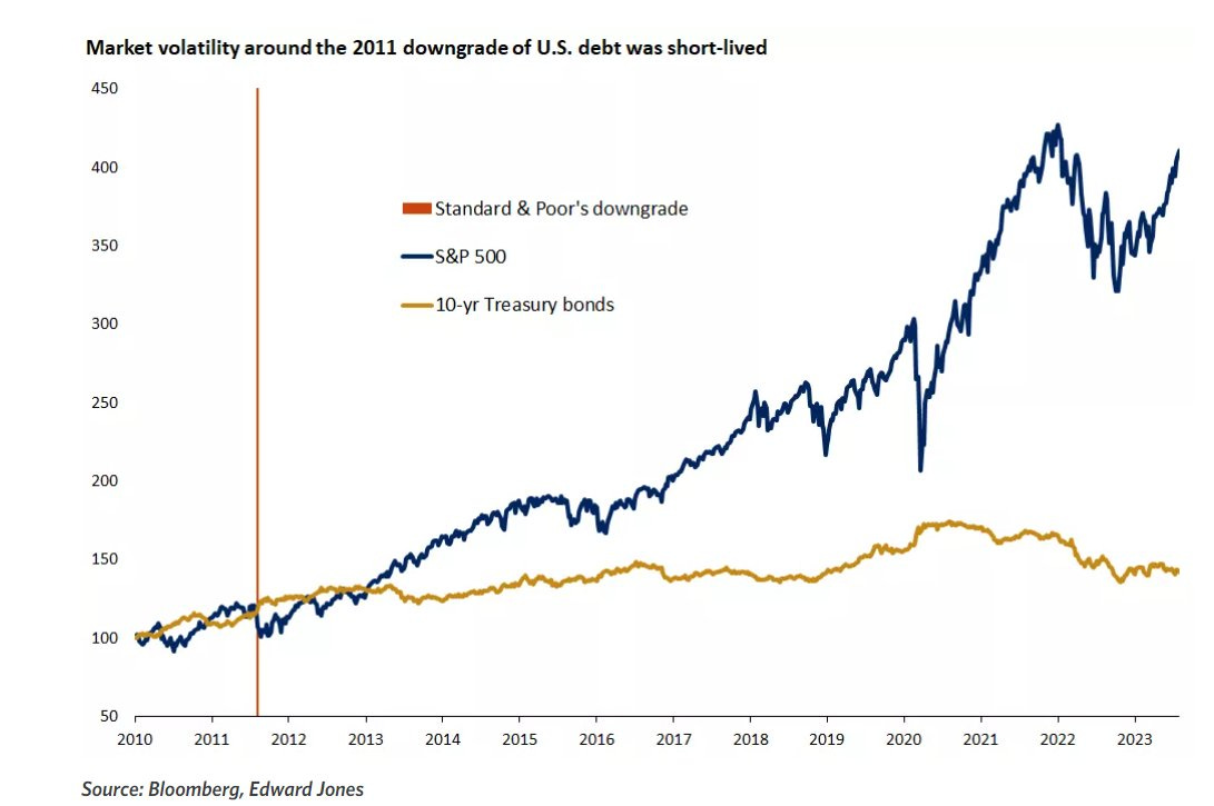 Quand les Ătats-Unis ont perdu leur AAA de Standard & Poor's en 2011, le S&P 500 avait perdu 4,8 % le jour mĂȘme et les actions Ă©taient restĂ©es trĂšs volatiles pendant 2 mois tandis que la smart money achetaient des obligations d'Ătat et du dollar comme valeurs refuges.