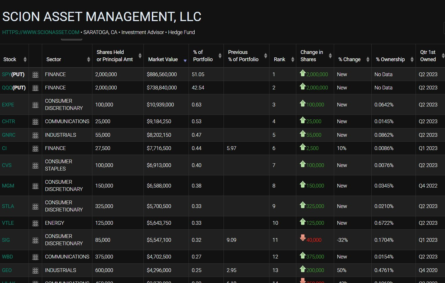 Sans surprise, le fonds Scion Asset Management du célÚbre Michael Burry shorte massivement les marchés US.