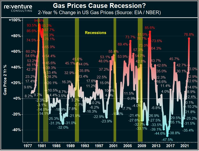 Chaque fois qu'une récession majeure s'est produite, elle a été précédée d'une forte hausse du prix de l'essence.