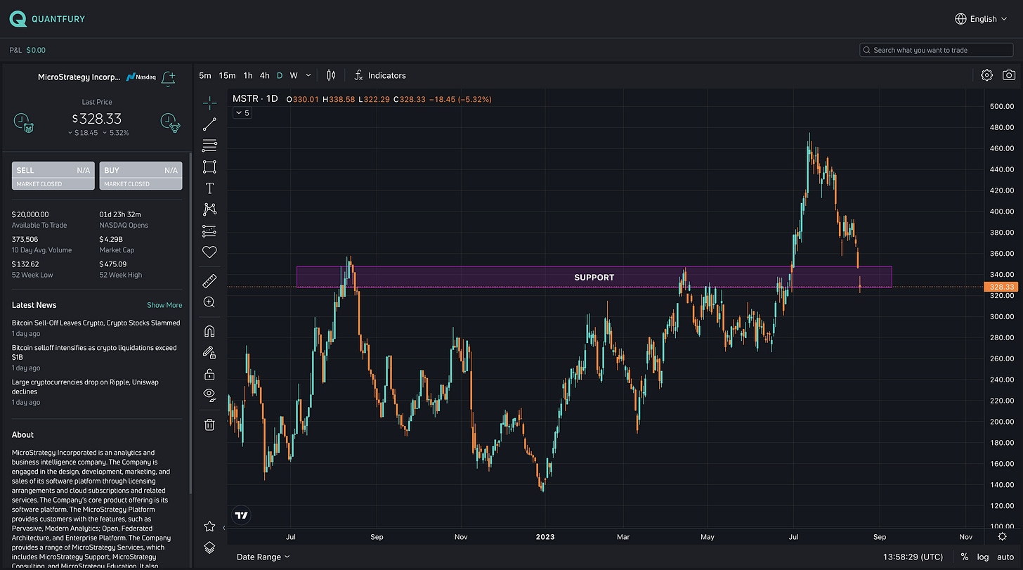 Si le cours de leur action rĂ©intĂšgre sous le support et que le BTC poursuit sa chute, alors MSTR aura besoin de plus de cash pour couvrir leurs prĂȘts dĂ©jĂ colossaux.